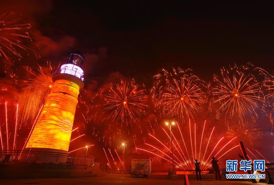 這是青島舉行的《有朋自遠(yuǎn)方來(lái)》燈光焰火藝術(shù)表演(6月9日攝)。新華社記者謝環(huán)馳攝